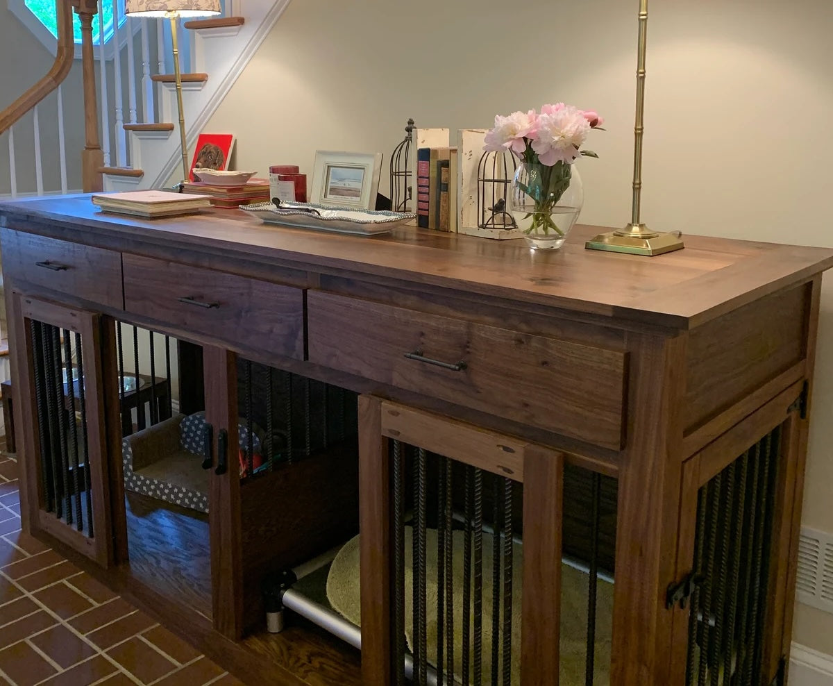 Made in USA Custom Wood Dog Crate Furniture, Dog End Table, Dog TV Stand, Kennel
