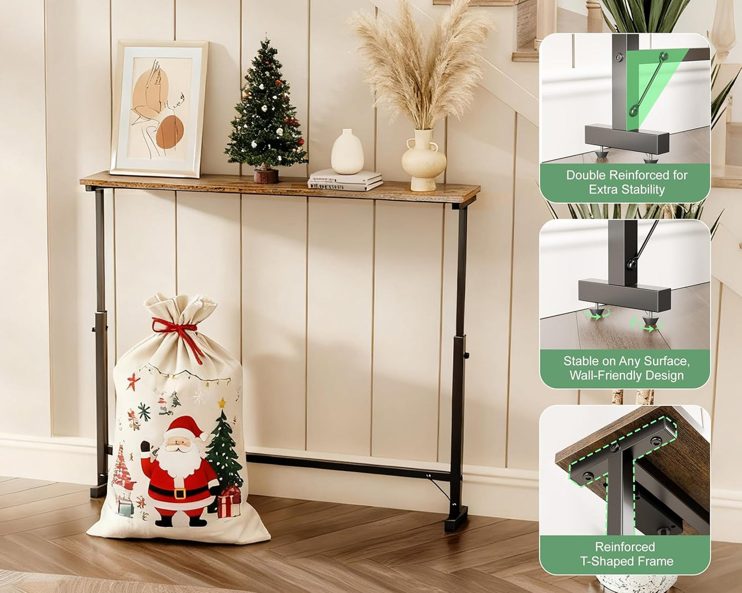 - [Adjustable Height, Always a Perfect Fit]: With a flexible range from 23.6" to 31.1", this narrow console table adapts to different sofa backs, chairs, or window sills—eliminating awkward gaps and mismatched heights. The sturdy T-shaped metal frame keeps it stable at any level, making it a reliable choice for living rooms, hallways, or entryways.
