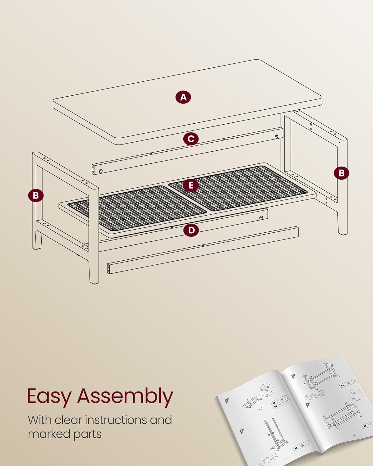 - [Effortless Assembly] This coffee table comes with clear instructions and marked parts, ensuring you can set it up quickly and without hassle. You'll be savoring your favorite beverages at this table in no time