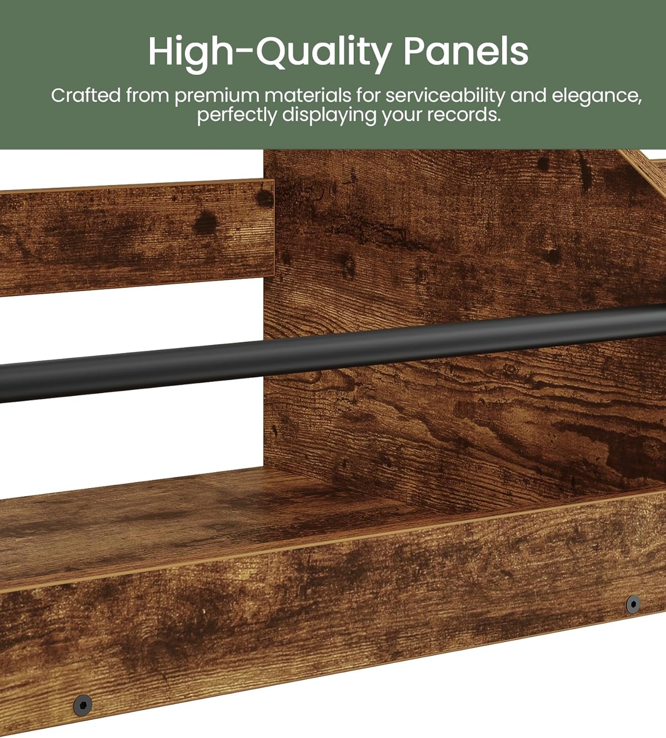 2-Tier Vinyl Record Storage Holder Rack, 250 LP Albums Display Shelf, Wooden Vinyl Storage Rack with Wire Dividers for Records, Cds, Books, Rustic Brown and Black TCW07BF