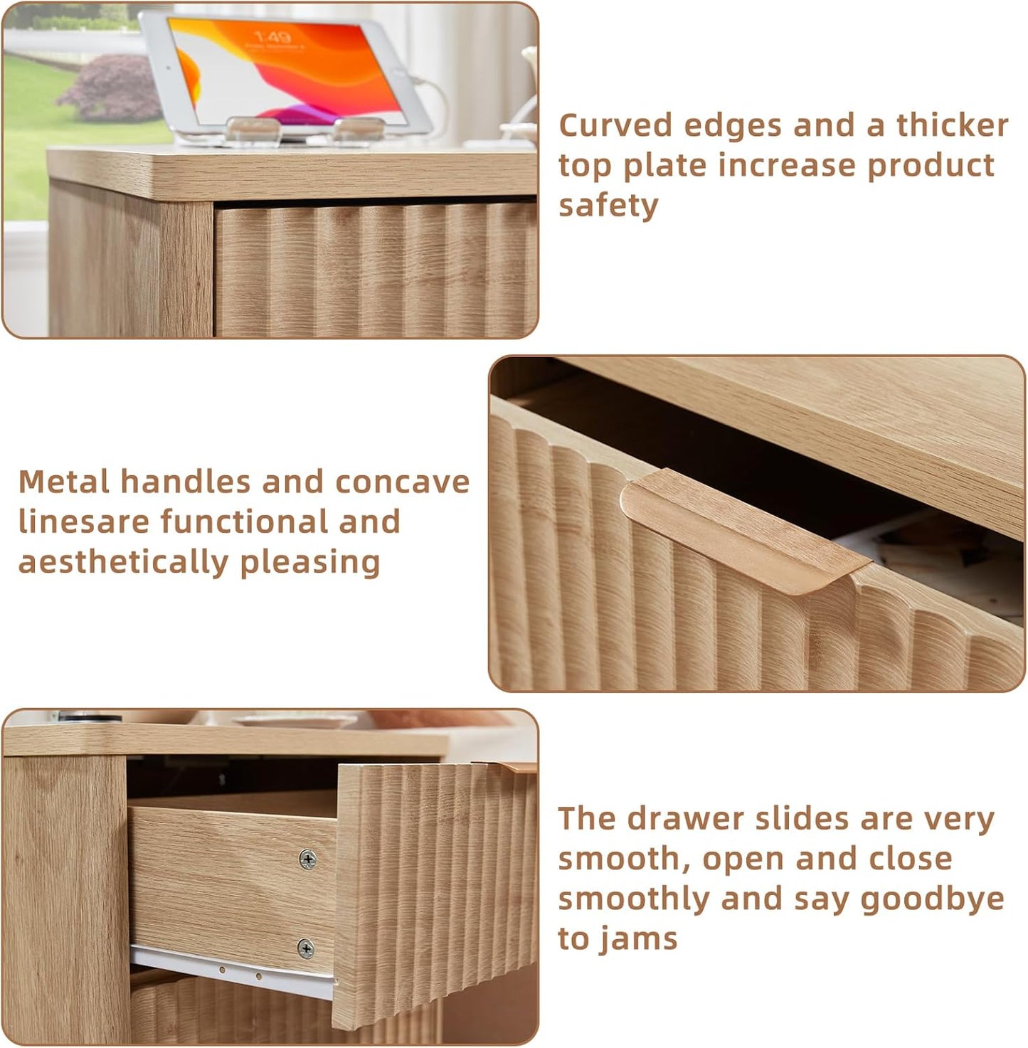 - [LEYAOYAO Versatile Farmhouse Nightstand] Our Fluted bedside table boasts a minimalist curve profile and a drawer with a unique waveform panel, which is a perfect blend of modern aesthetics and functional design. The smooth curved edges make your bedroom exude elegance! This night stand can be used not only as a bed side table but also as a living room end table. Add a strong rustic colour to your bedroom and living room.