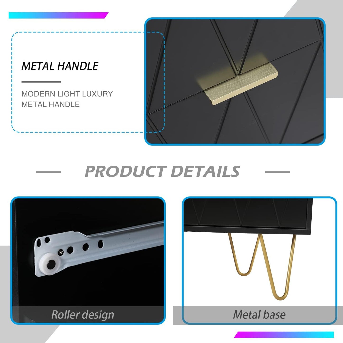 3 Pcs Bedroom Set, 6 Drawer Dresser and 2 Nightstand Sets for Bedroom, Night Stand Set of 2 & 6 Drawer Dresser with Gold Handle, Modern Set (Black)