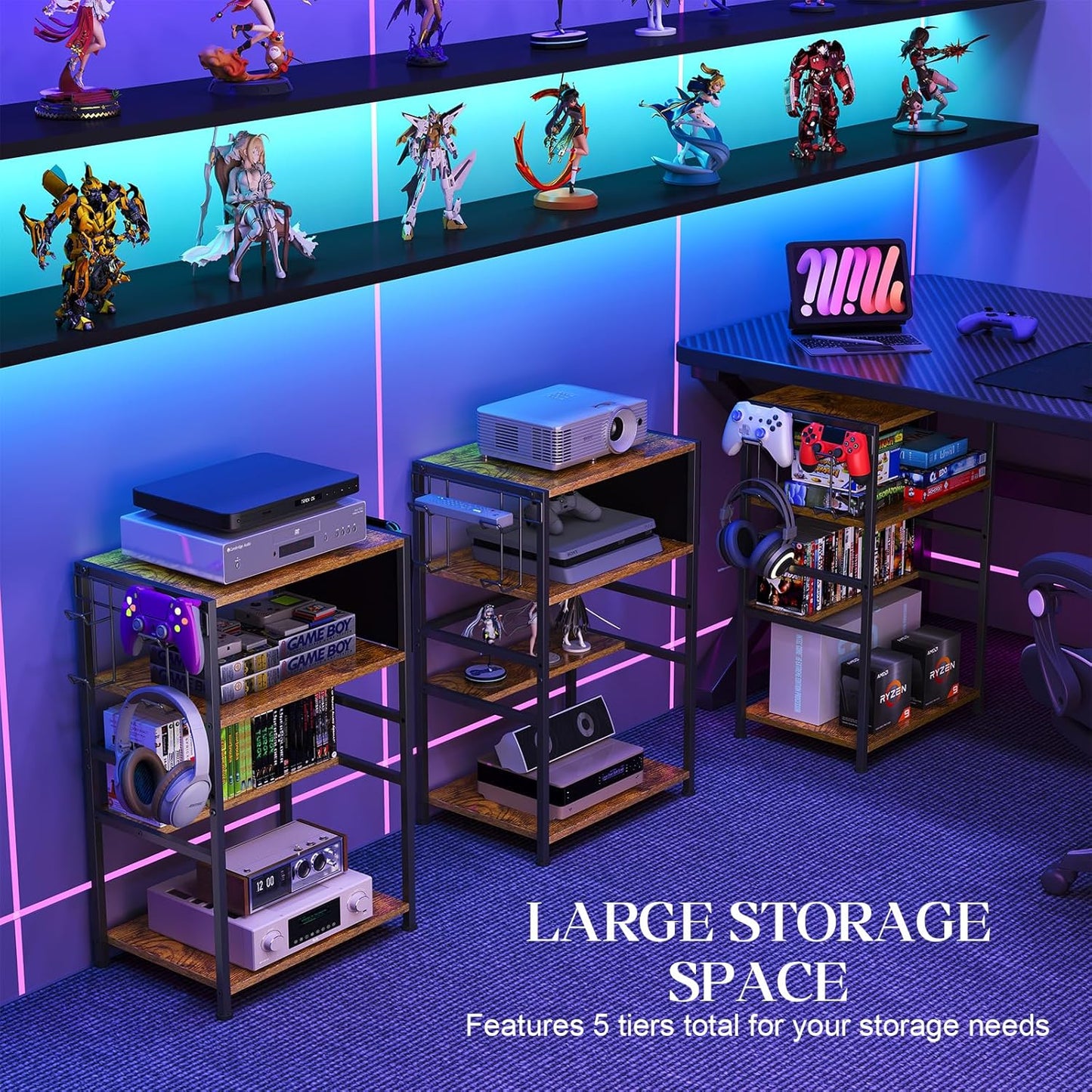 4-Tier AV Media Stand,Game Console Stand with 4 Hooks and Fabric Bags,Dvd Shelf,Media Storage Cabinet,Audio Rack Record Player Stand Small Entertainment Center for Home Dorm, Apartment