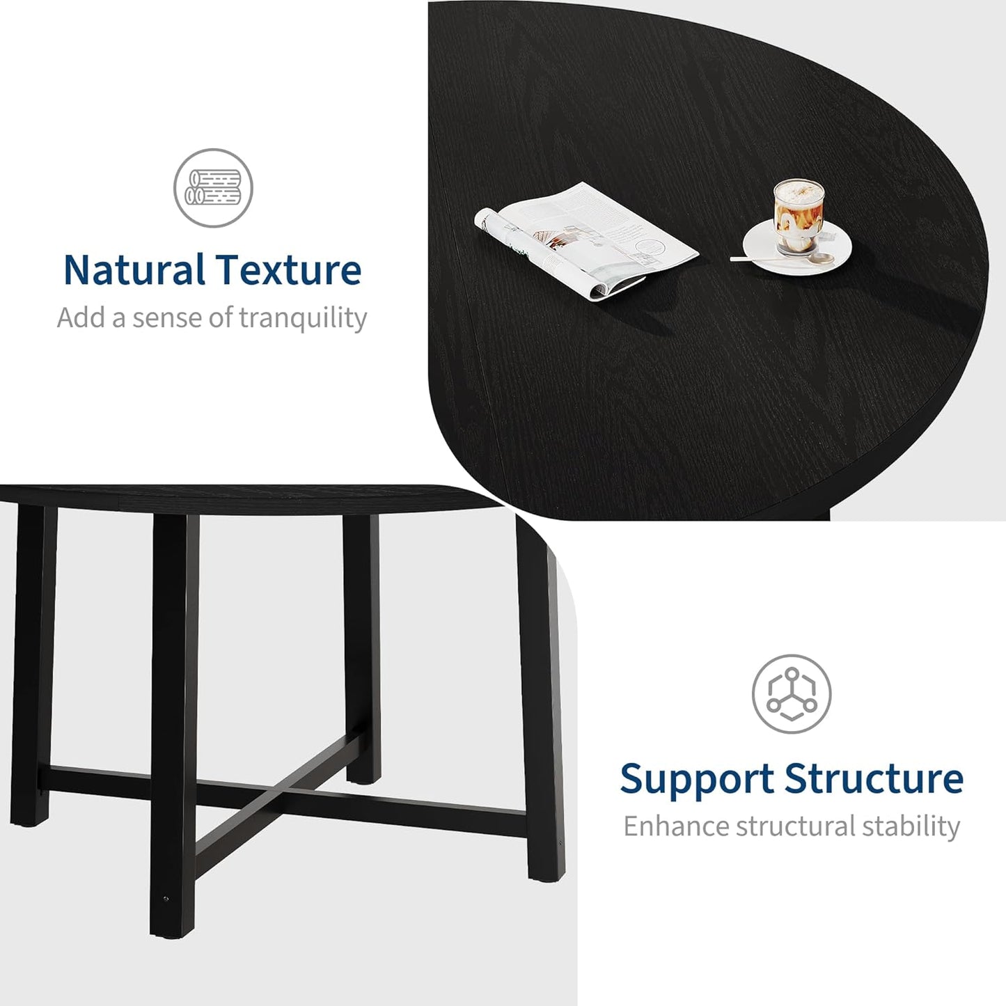 47" round Dining Table for 4, Kitchen Dining Room Table with Sturdy Metal Frame, Wood Circle Kitchen Table for Space Saving -Black