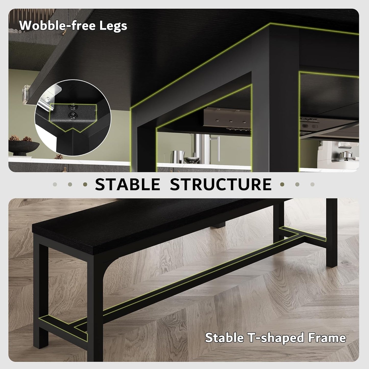 - Sturdy & Durable: Crafted with a wooden metal frame and reinforced joints, this dining room table set offers exceptional stability. The heavy-duty construction resists wobbling, while non-slip rubber feet keep it steady on any floor. Each bench supports 550 lbs, and the table's balanced design ensures it stays firm even when fully extended for large gatherings