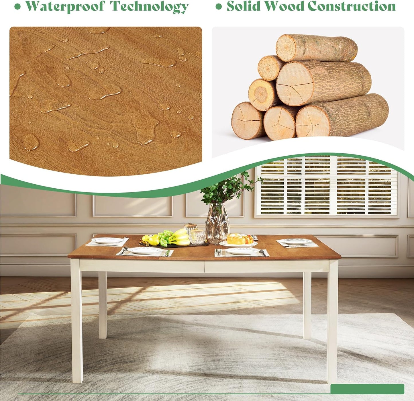 7-Piece Farmhouse Solid Wood Dining Table Set with 6 Upholstered Chairs, 60" Space Saving Dinner Table & Chairs Set, for Dining Room, Kitchen, Restaurant, Brown & White
