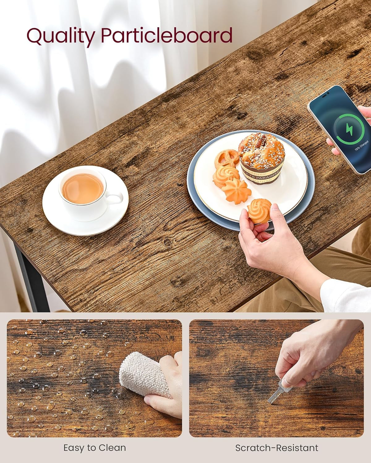 Item Type Name | Narrow Long Kitchen Dining Table with Charging Station, Sturdy Metal Frame, Industrial, 15.7 x 39.4 x 35.4 Inches, Rustic Brown and Ink Black ULBT101K01 |