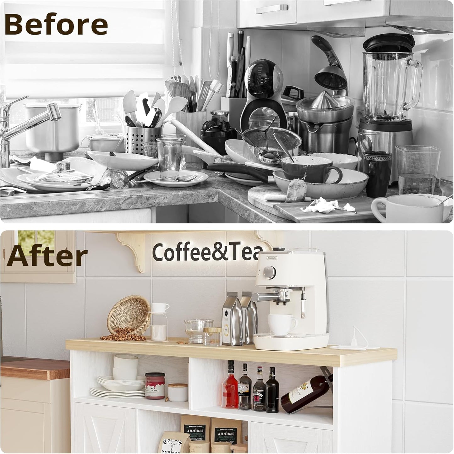 - Ample Storage Space: Designed as a versatile sideboard buffet cabinet, it combines open and closed storage. The open shelves are ideal for showcasing decor, while the lower cabinet with adjustable shelves offers plenty of room for kitchen storage cabinets essentials, keeping everything organized