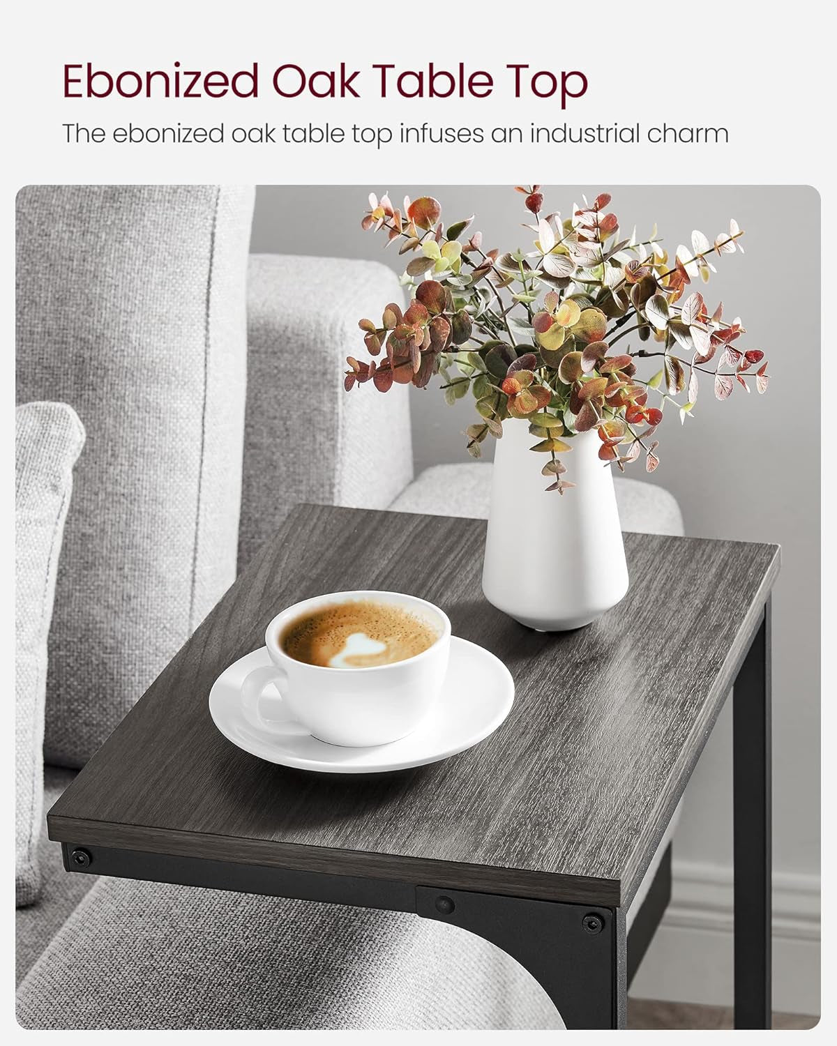 - [Perfect Sofa Sidekick] This C-shaped end table with a low 1.1” bottom frame easily slides under your sofa, and the 26.3” high table top fits over the arm of your sofa for easy access to items on it