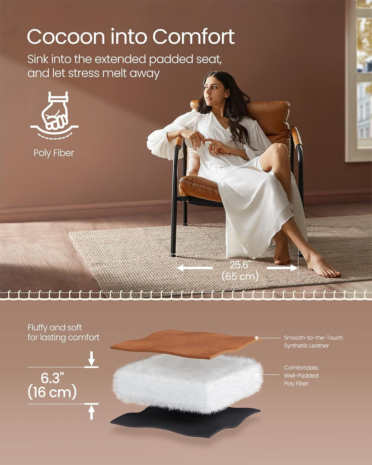 - [Style That Speaks] This accent chair comes from our VASAGLE EKHO Collection—a furniture line that blends richly textured synthetic leather with refined stitching. A tangible homage to craftsmanship, it helps craft a home that speaks volumes about style