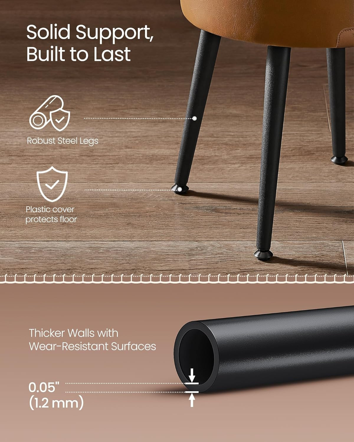 - v[Built to Last] This vanity chair is constructed with 4 sturdy steel legs, reinforced with a 1.2 mm thickened wall, and swivel leveling feet. You can confidently rely on it to support up to 330 lb (150 kg)