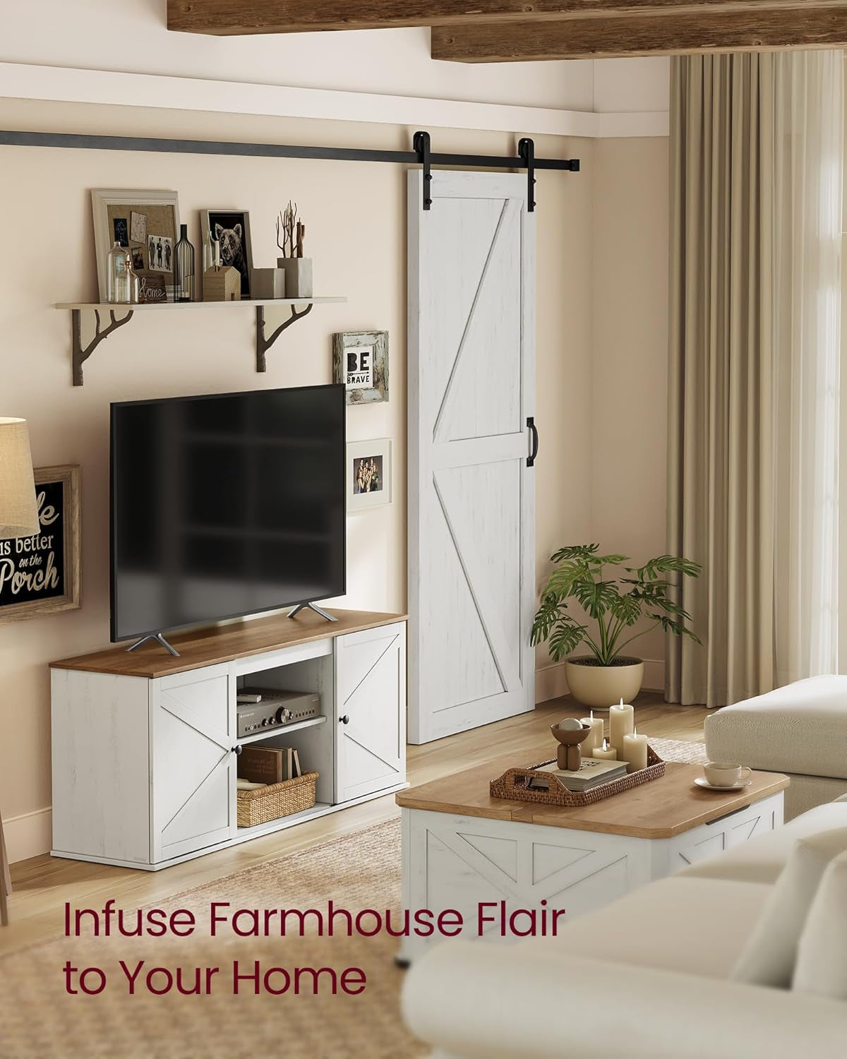 Farmhouse TV Stand for Tvs up to 65 Inches, Entertainment Center with Storage Cabinets and Sliding Barn Doors, Media Console Table for Living Room, Rustic White and Honey Brown ULTV535W01