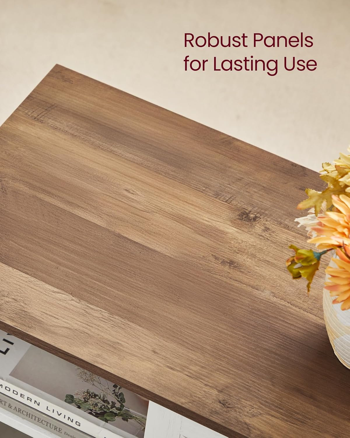Transform your living space with the VASAGLE TV stand, a perfect blend of rustic charm and modern functionality.