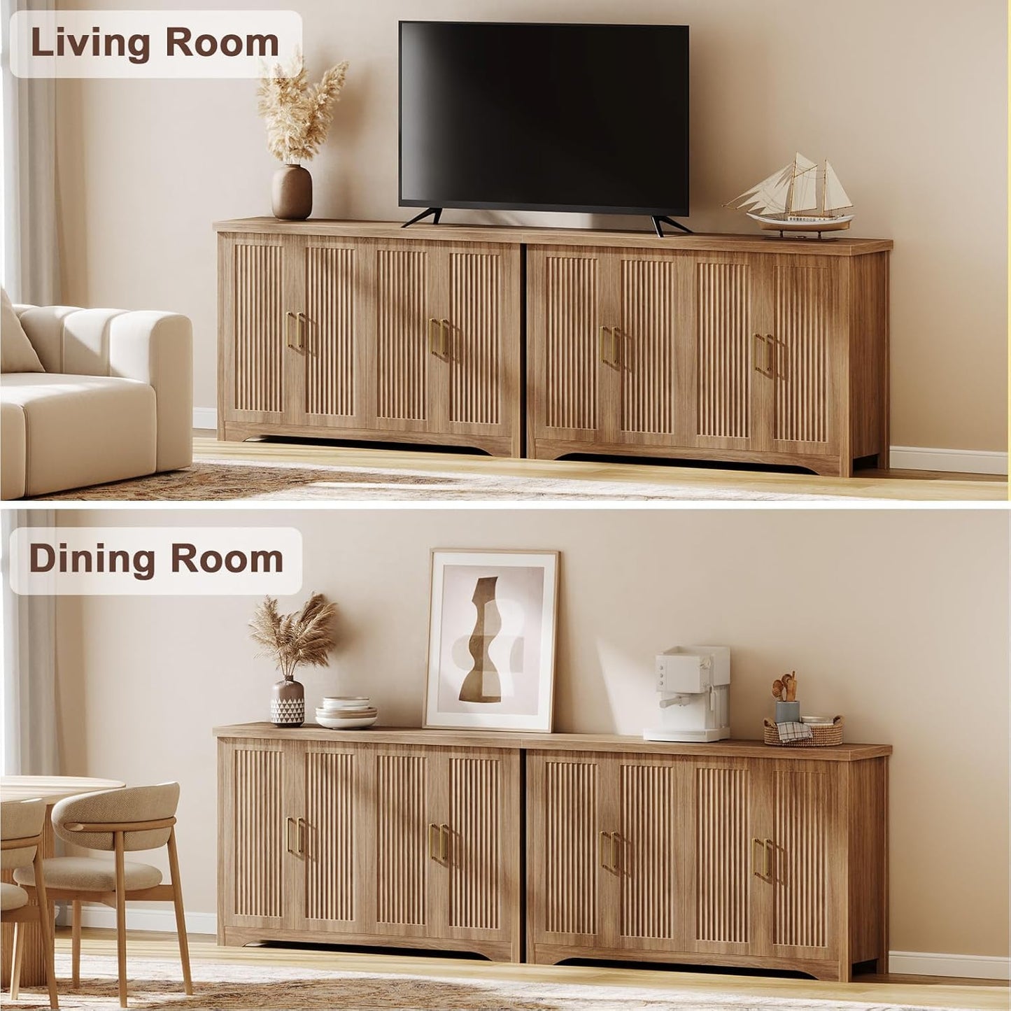 Fluted Buffet Cabinet with Storage Accent Sideboard,Modern Credenza with 4 Doors & Adjustable Shelves,Wood Coffee Bar Table Console for Dining Room Kitchen Living Room Entryway,Natural Oak