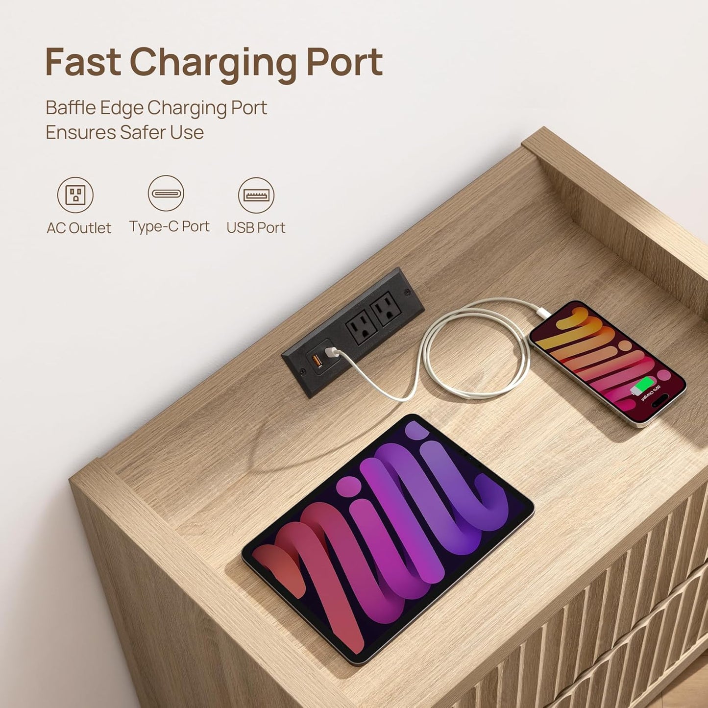 - 【Convenient Night Stand with Charging Station】- Don’t worry about low battery again! Our farmhouse large nightstands with a built-in charger station in the raised edge baffle, featuring both AC outlets and USB ports allow you to charge your phone, tablet, or other devices right at your bedside. No more searching for outlets.