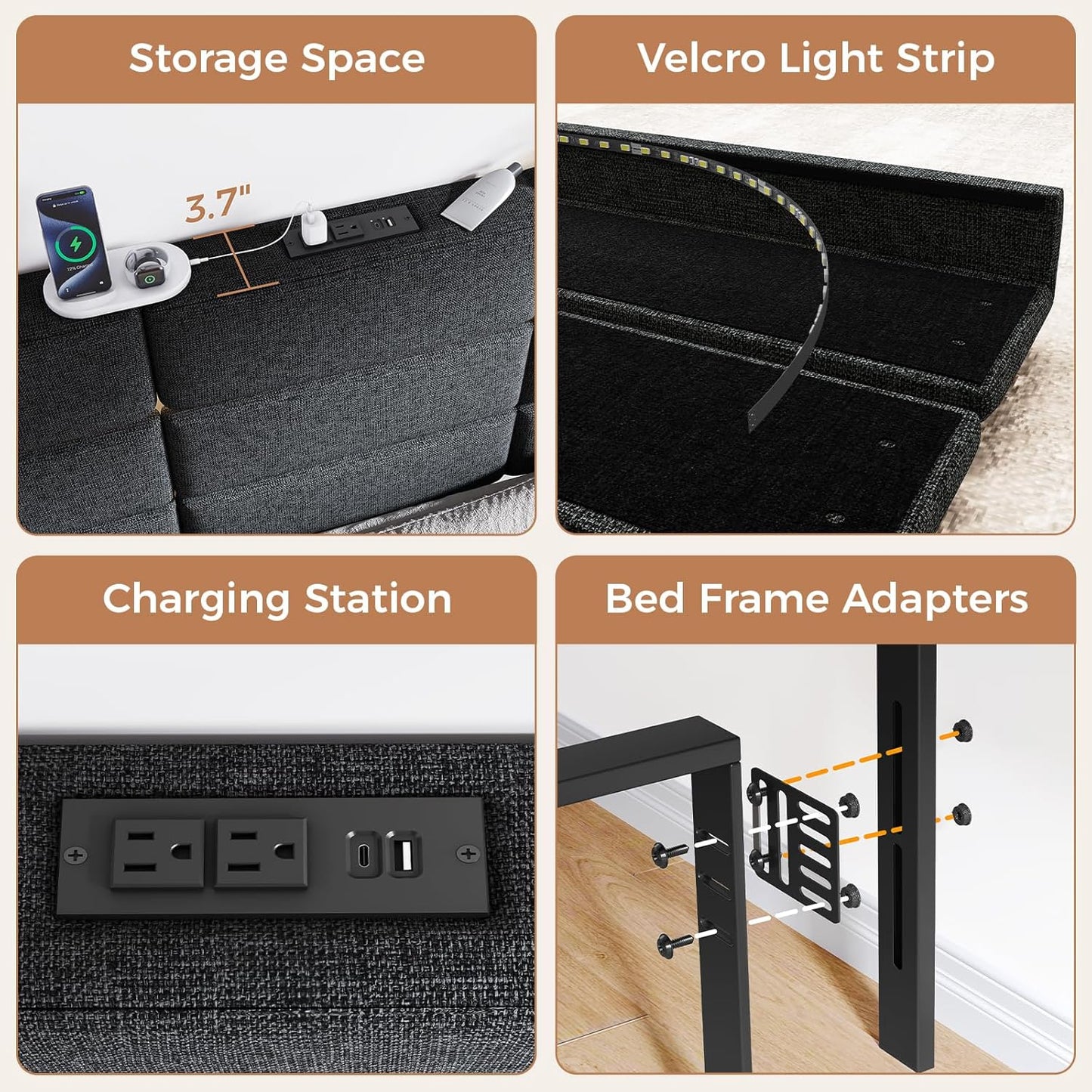 - Convenient Charging Station: This headboard integrates a built-in charging station with 2 AC outlets, 1 USB and 1 Type-C for phone and tablet charging