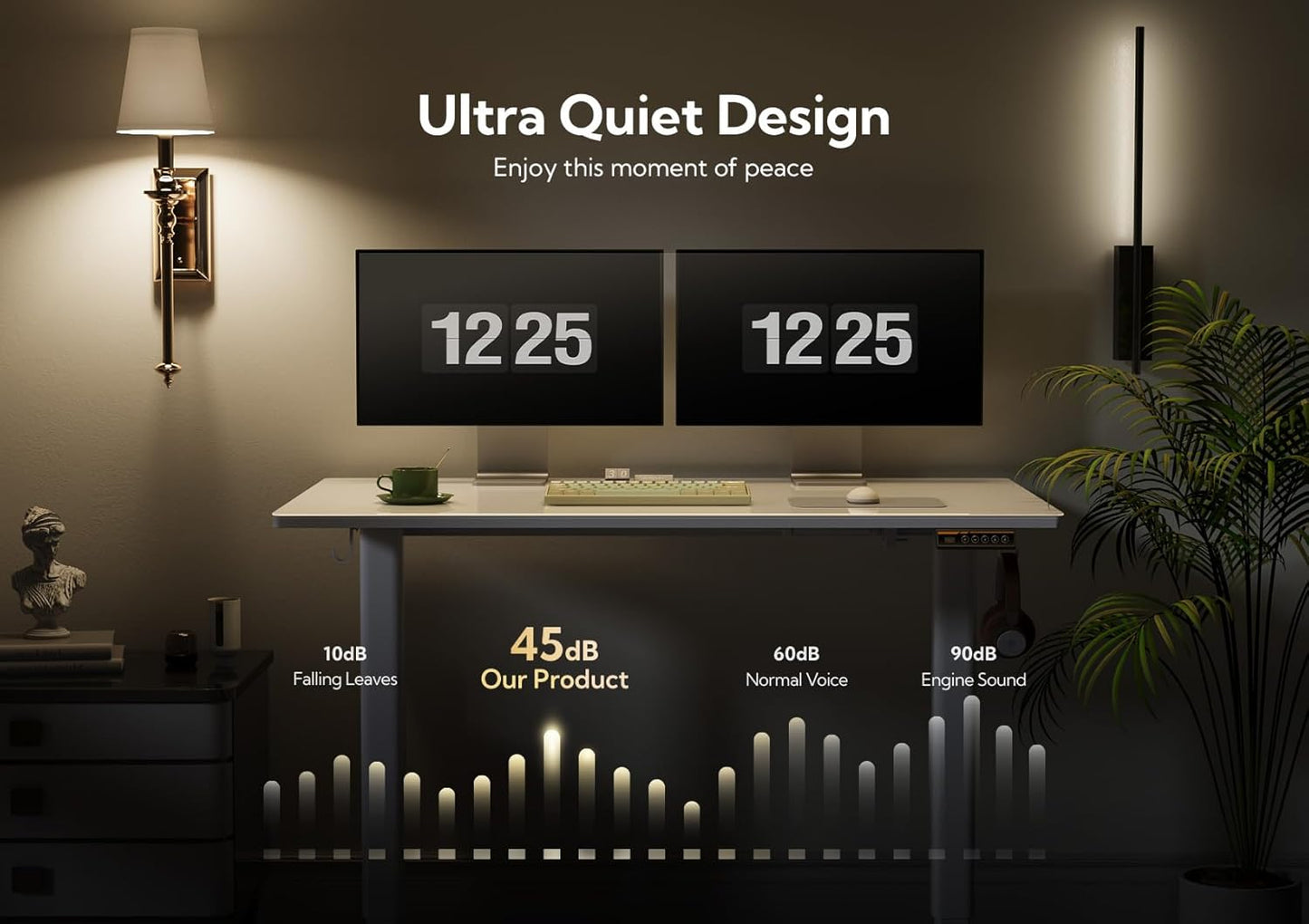 - Electric Height Adjustment: Our electric standing desk is equipped with a robust motor that smoothly adjusts the height from 28.3 inches to 46.5 inches with 3 programmable height presets for quick and easy adjustment to your preferred height, catering to your needs
