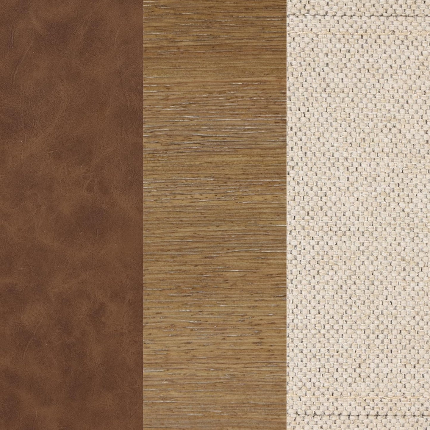 Hudson is the perfect accent chair for your bedroom or living room. This white armchair features a comfortable cushioned seat in natural flax fabric, and the arms are upholstered with an elegant chestnut brown faux leather. Hudson's frame is made of rubberwood and finished with a wire brushed light brown color that ties its overall look together, making this mid-century modern chair look timeless and stylish inside your farmhouse-themed home. The thick foam cushion and solid wood frame can accommodate up to 300 lbs of weight.