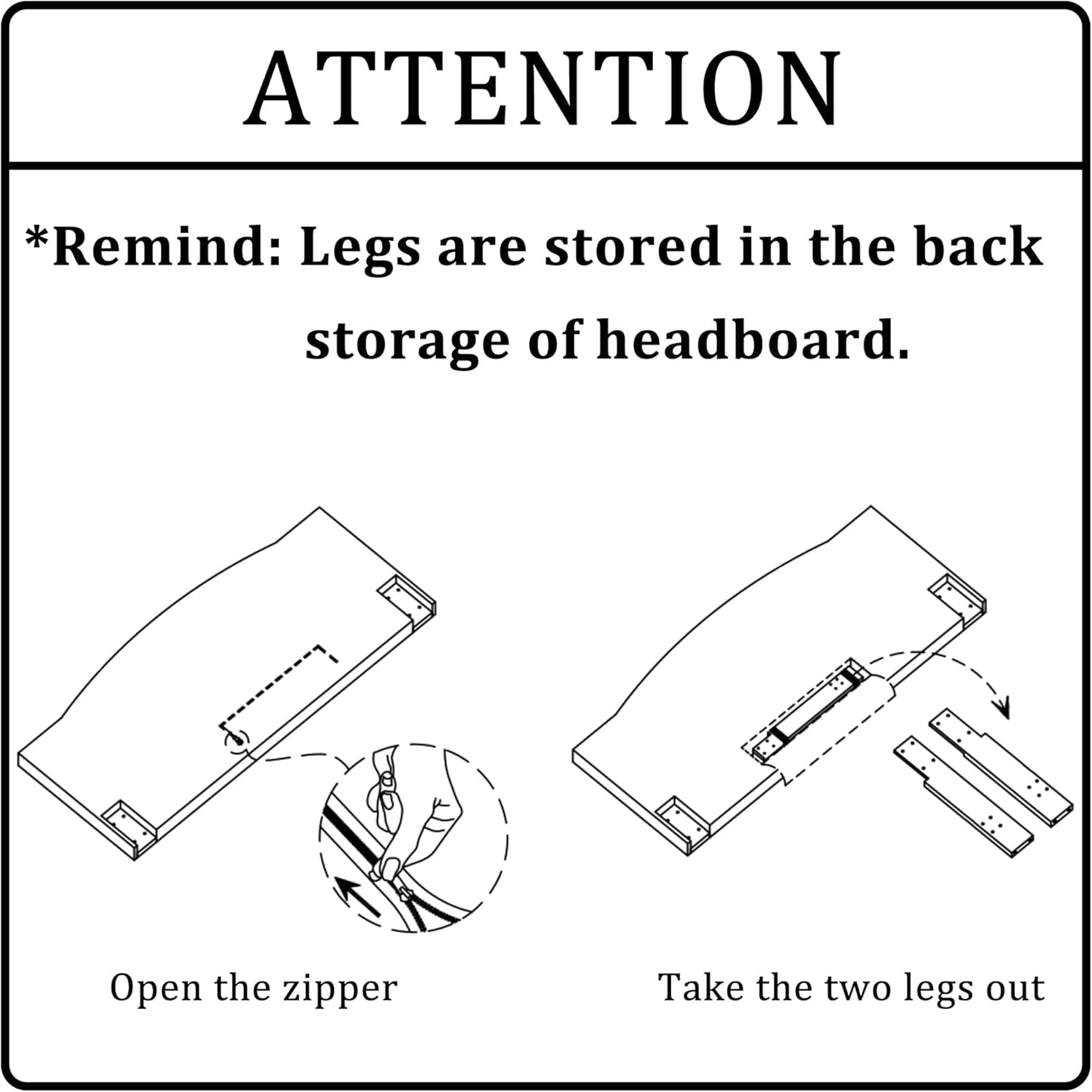 - EASY ASSEMBLE: This wall mounted headboard is included tools and instructions, assembly video available, for easy assembly. Legs are in the back of headboard, open zipper to get them. Product Size: 78”W*52.5"H