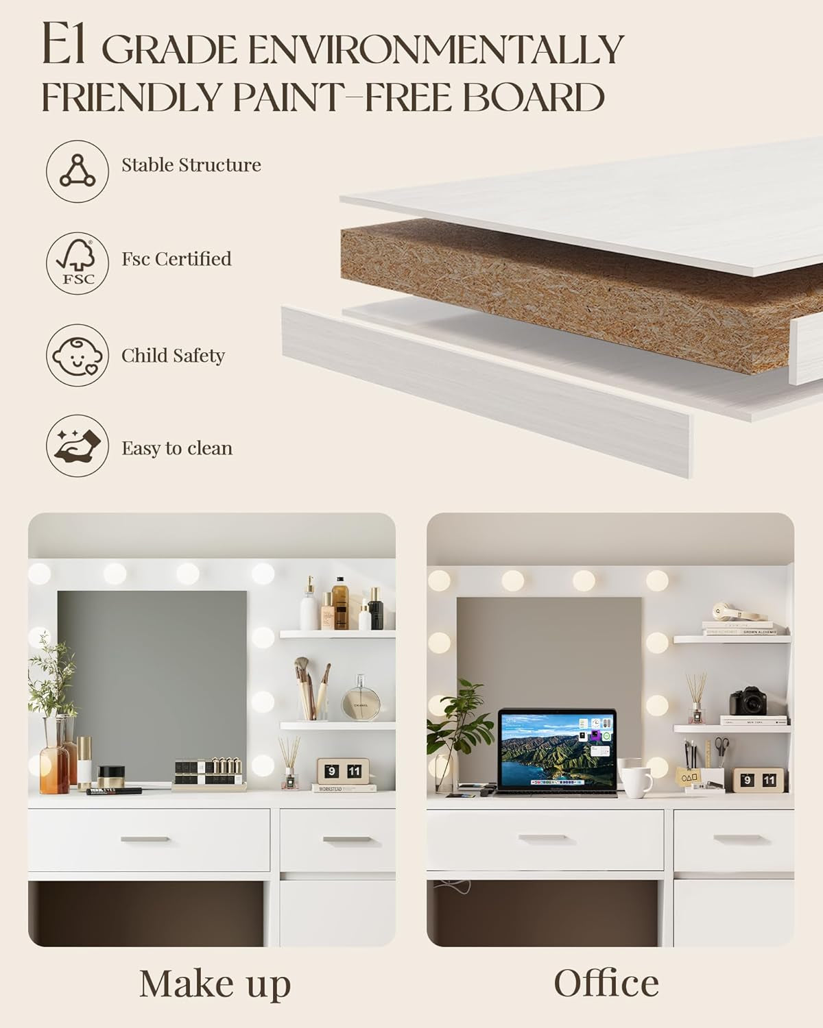 - 【Maintenance-Free Beauty: Say goodbye to constant upkeep】 – our vanity desk is virtually maintenance-free, waterproof. Simply wipe away dust and stains gently to maintain the vanity desk's beauty and hygiene, allowing you to focus on your beauty routine, not on caring for your furniture.