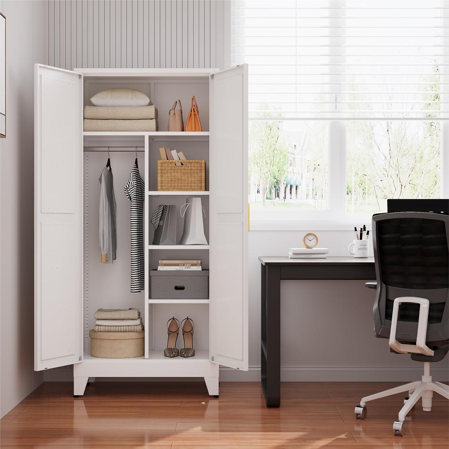 Metal Armoire Wardrobe Closet with Hanging Rod,71'' Laundry Room Cabinets with 2 Doors and 3 Adjustable Shelves,Bedroom Armoires,Laundry Room Cabinets,Armario De Ropa Closet(Modern)