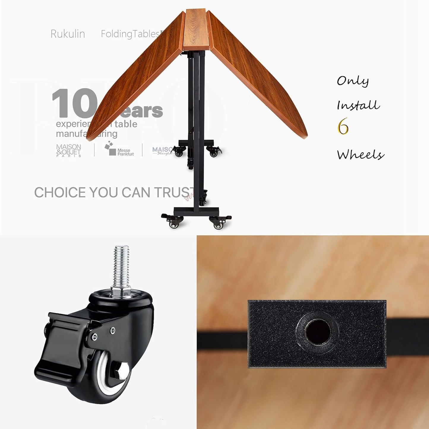 - 6 LOCKABLE WHEELS there are 6 casters on the bottom of the foldable kitchen table, all wheels are equipped with brakes and are wear-resistant, which makes it easy to move and fix anywhere. You can move it anywhere in the home, and the flexible casters on the moving board make it easy to expand and fold the table