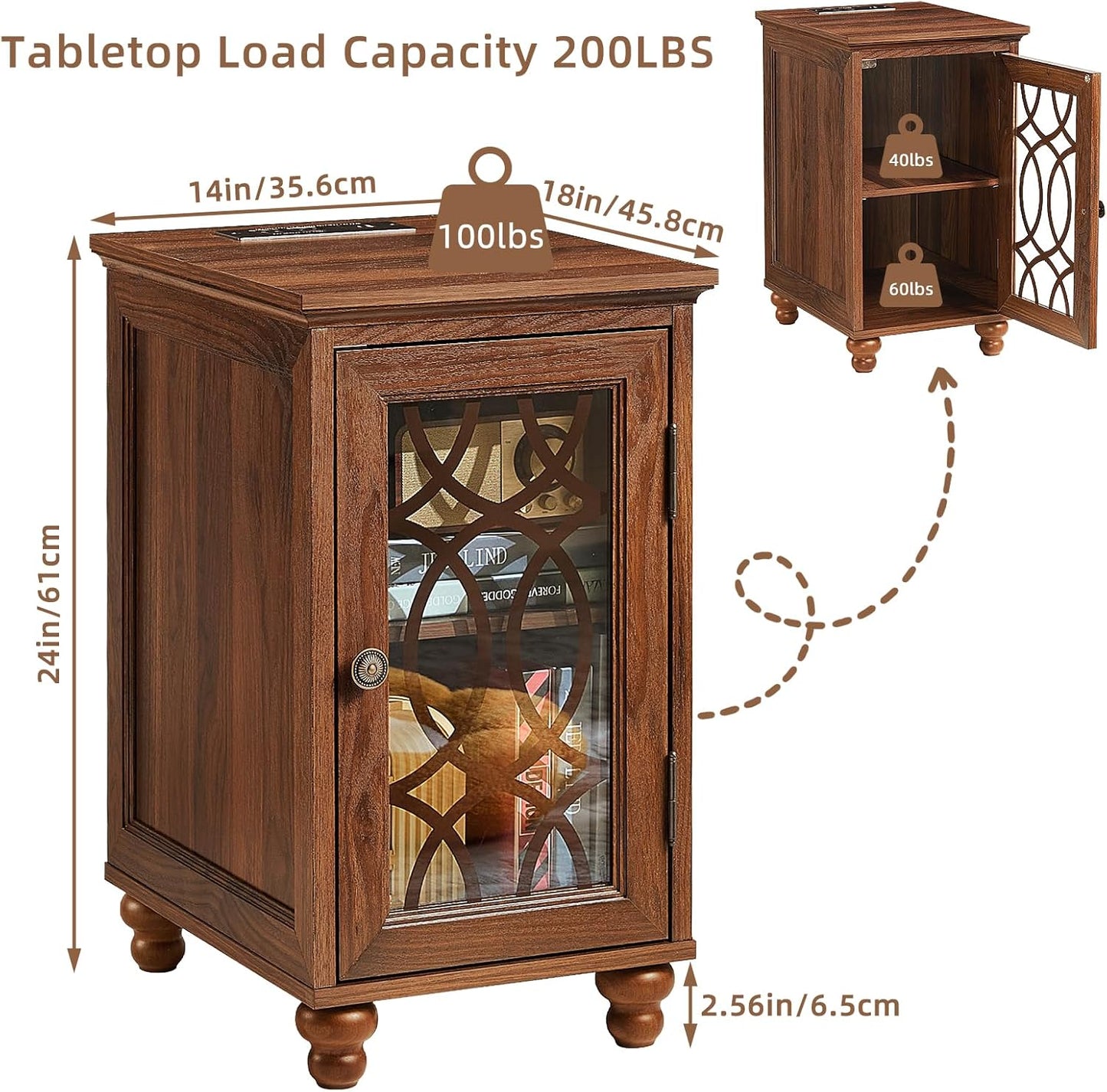 • [Narrow Side Table with Charging Station]This charming night stand features a built-in charging station, adding a unique touch to your home. Its Elegant decorative lines on glass doors and distinctive round gourd legs create a stunning aesthetic, reminiscent of a work of art. No matter the angle, the nightstand exudes captivating visual appeal, seamlessly blending functionality with beauty. This narrow end table is ideal for enhancing the warmth and style of your bedroom.