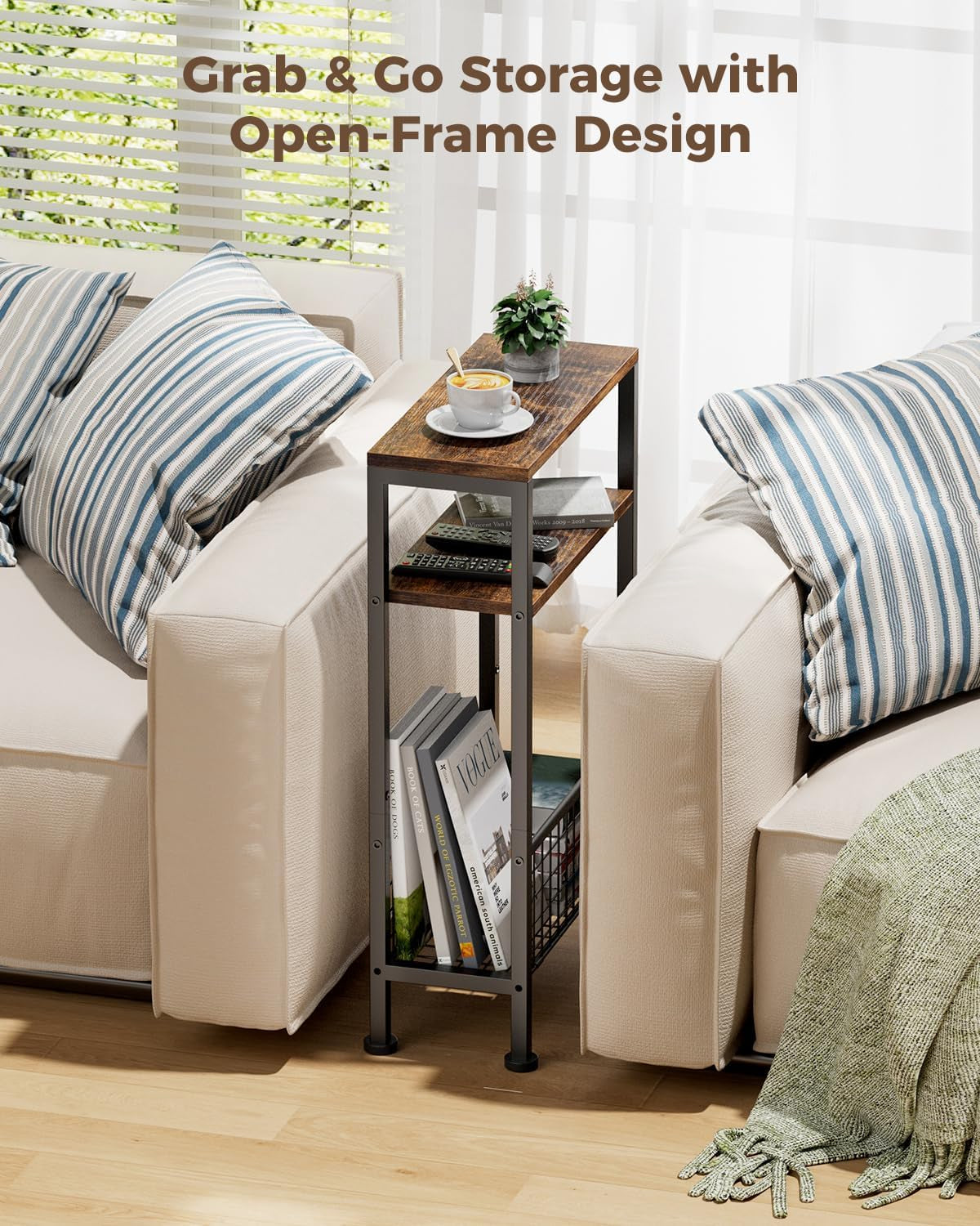 - Multi-Purpose Organizer: With its compact footprint (15.8"L x 6.7"W) yet tall 26" height, this 3-tier end table offers impressive storage for lamps, small appliances, décor, and household essentials. Its elevated design makes it easier to reach items from the sofa, bed, or other tight spaces. Slim, stylish, and versatile, it works perfectly as a side table, nightstand, bedside table, or storage rack, making the most of any small area in your home.