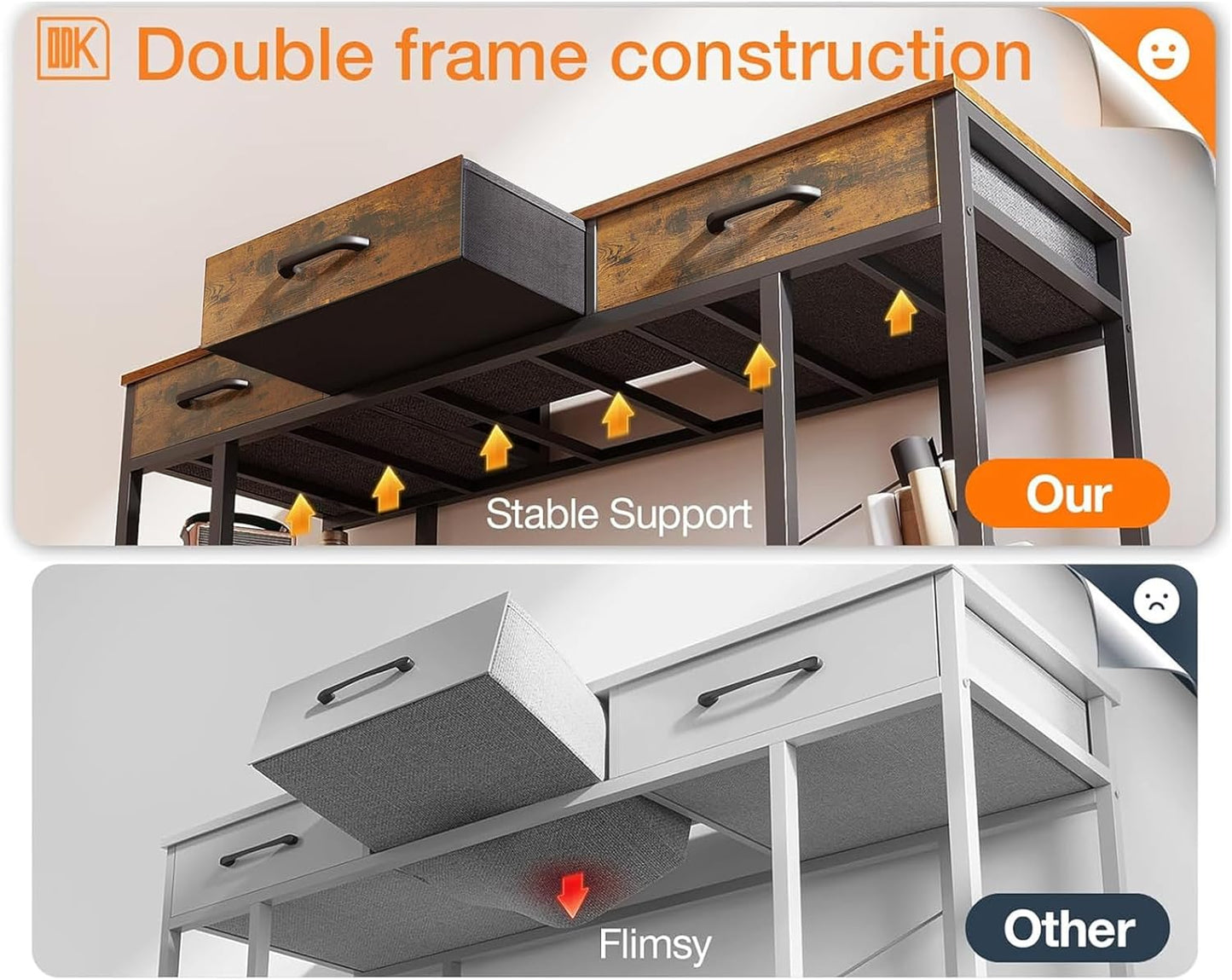 - 👉【All-in-one Versatility Computer Desk】The perfect desktop size (47.3 inch*15.7inch) fits your laptop, books and 3 large capacity fabric drawers (each drawer can support up to 8 lb, about 2 laptops). Ample room for all of your office or work- from-home needs! The detachable underneath storage shelves of the desk can be placed in any size so it works perfect for any usage. (Eg: books, organizer.) There are also a lot more legroom and space for you.