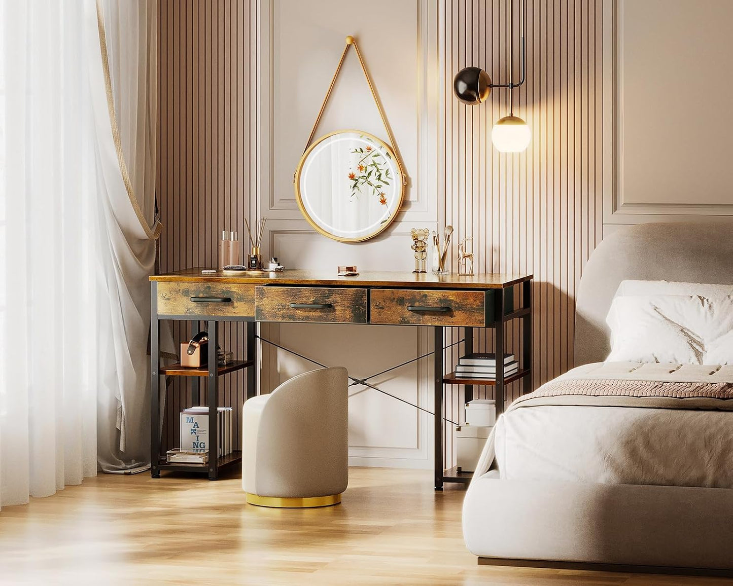 Office Small Computer Desk: Home Table with Fabric Drawers & Storage Shelves, Modern Writing Desk, Vintage, 48"X16"