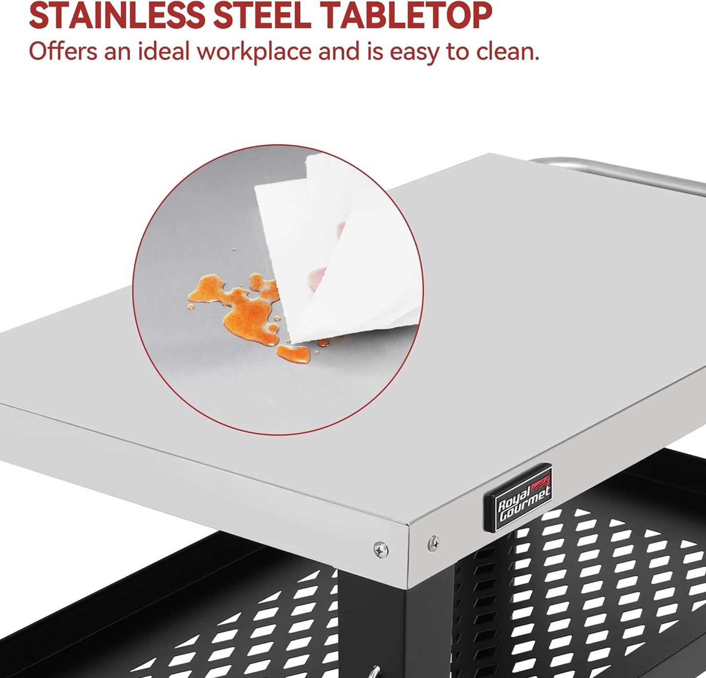 The multifunctional Royal Gourmet PC3404S Movable 3-Shelf Grill Table with Removable Trash Bag Holder gives you an idea of how convenient cooking can be by serving your kitchen needs on its 34" L x 20" W stainless steel tabletop, like preparing food aside when cooking. It features a robust steel structure with 4 sturdy tube legs that can either move around like a trolley or stay stable on uneven terrains. Moreover, you’ll be impressed by the 2 extra shelves to store your food materials, seasonings, and other cooking utensils, which do make almost everything within arm’s reach – there’s even a handy removable holder for trash bag!