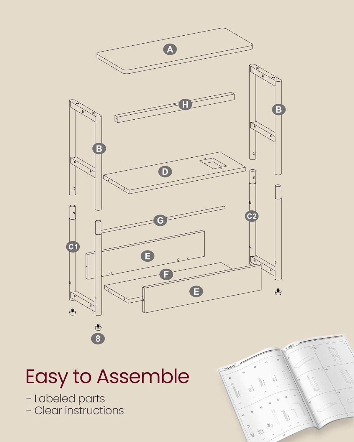 - [Sturdy and Durable] Constructed with quality particleboard panels and a robust steel frame, this 3-tier nightstand can hold up to 220 lb, offering a stable and durable storage solution