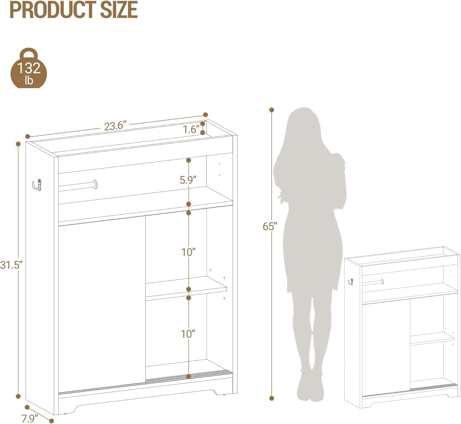 - Product Dimensions: 7.9"D x 23.6"W x 31.5"H, (20 x 60 x 80 cm )