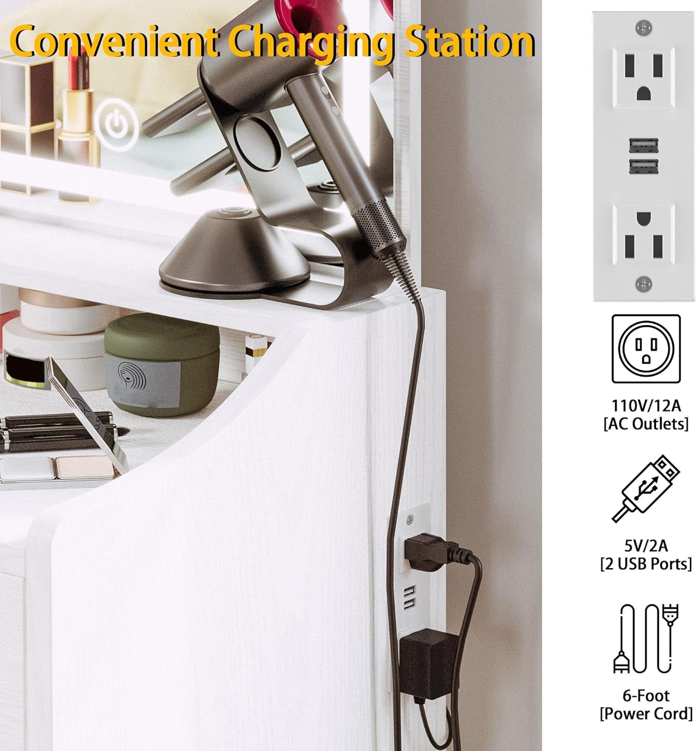 - Stylish and Versatile: Equipped with a charging station, convenient for charging hair dryers, mobile phones and other devices, Its smooth curved design is safe and adds a touch of elegance and sophistication to your bedroom