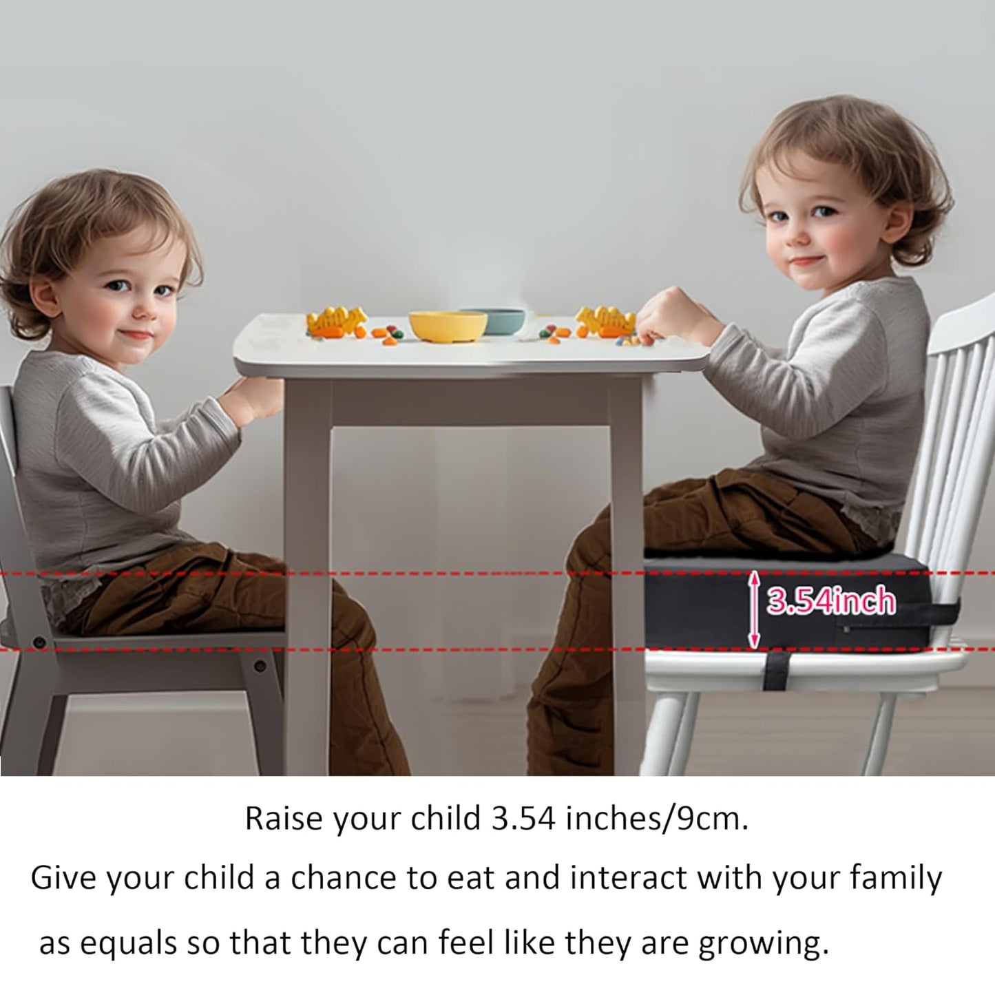 Toddler Booster Seat for Kitchen Chair, 3.5" Oxford Foam Cushion, Non-Slip Base, Adjustable Straps, Portable Dining Booster for Self-Feeding Toddlers at Home or on the Go (Dark Grey)