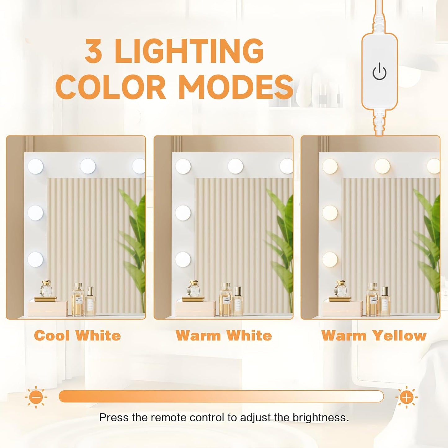 - LARGE MIRROR & 10 HOLLYWOOD STYLE LIGHT BULBS: Clean large mirror can show more of your beauty. With 10 LED bulbs with adjustable brightness and color, it perfectly adapts to all kinds of ambient light, creating the most comfortable environment for you to apply makeup easily.