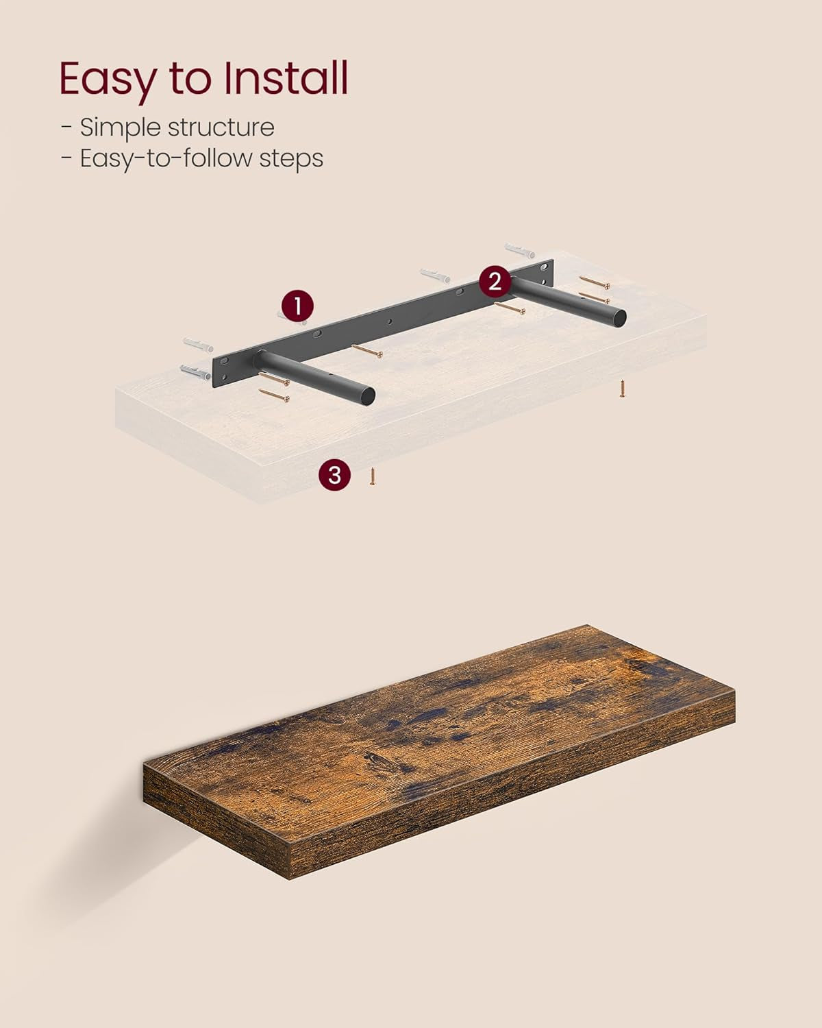 - [Fits Perfectly with Any Aesthetic] With its rustic brown surface and wood grain, this wall shelf exudes a touch of sophistication. Wherever it is placed—whether it's the living room, study, bedroom, hallway, or kitchen—it becomes a real eye-catcher