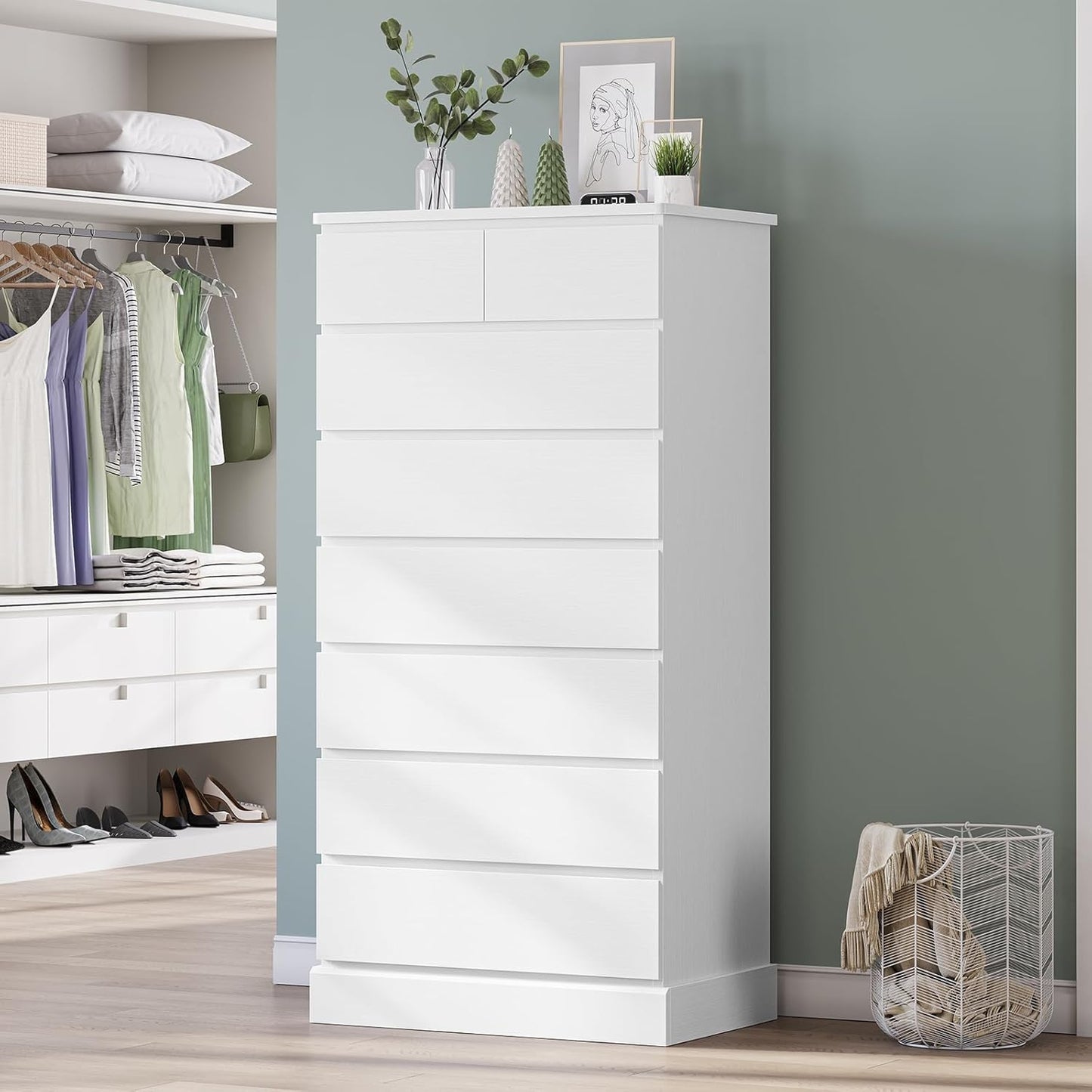 DICTAC White Dresser for Bedroom with 8 Drawers, Modern Tall Chests of Drawers