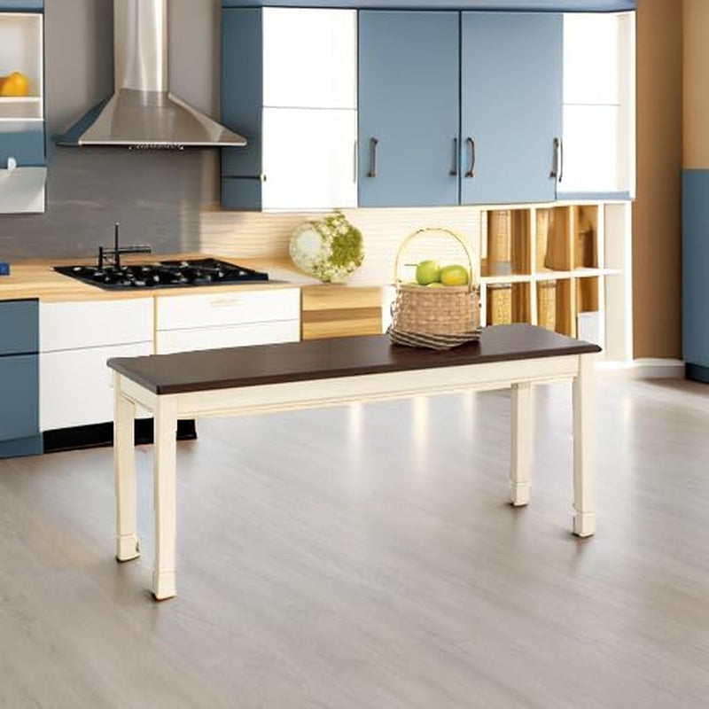 - CLASSIC DINING ROOM BENCH: The warm wood seat of this casual cool dining bench blends beautifully with classic white legs, for a relaxed and timeless look in any dining room, entryway, or casual living room